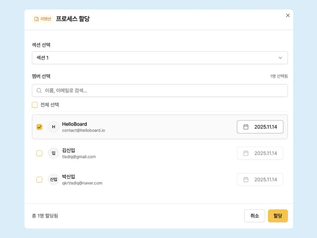 온보딩·리텐션 프로세스에서 검색과 다중 할당이 가능해졌고,
