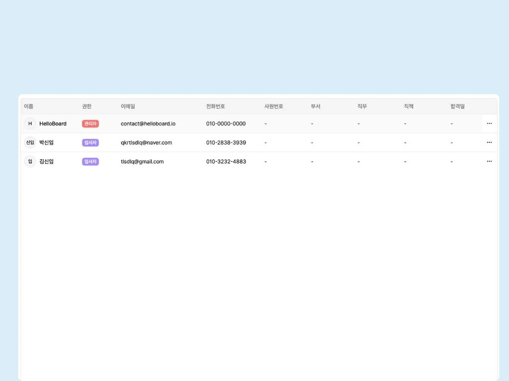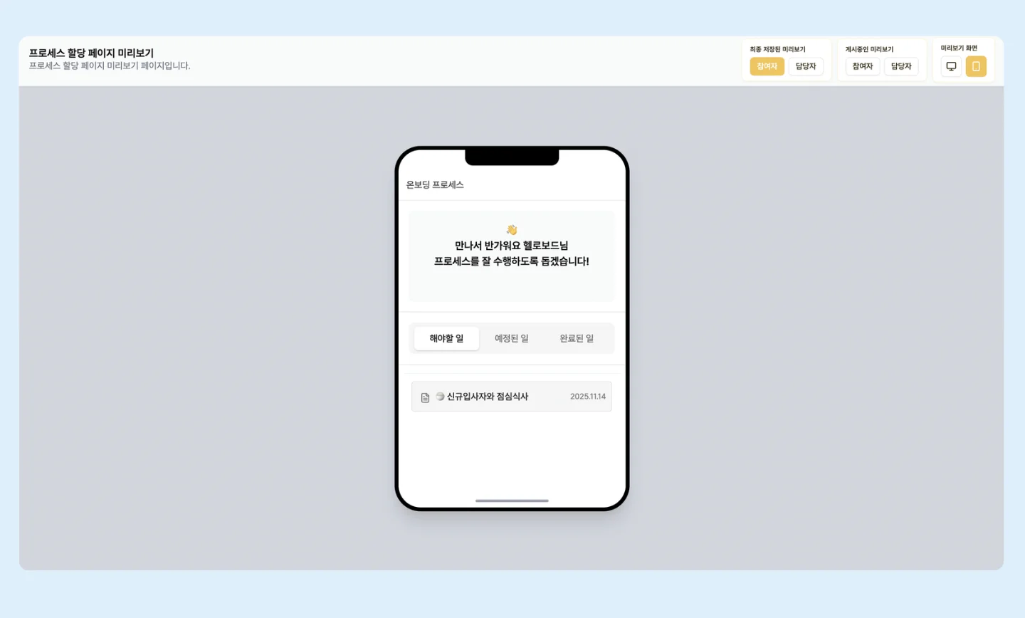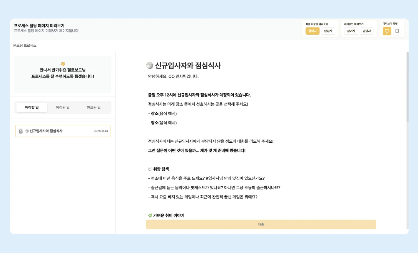담당자와 입사자에게 실제로 어떻게 화면이 보이는지 확인할 수 있는 기능을 추가했습니다.